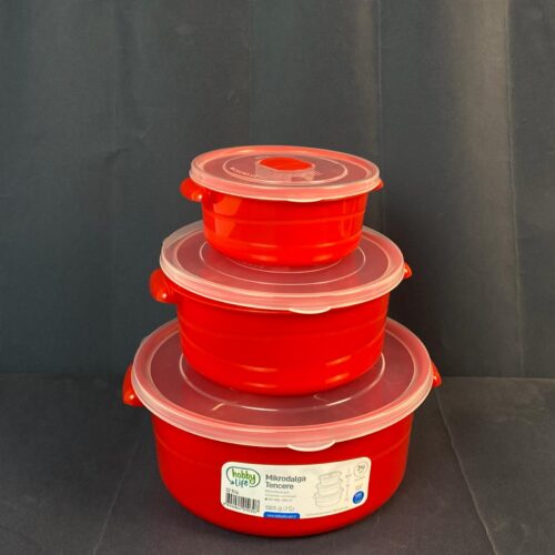 طقم 3 علب مدورة بغطاء للميكرويف ألوان مختلفة 0.5+1.0+2.0 لتر