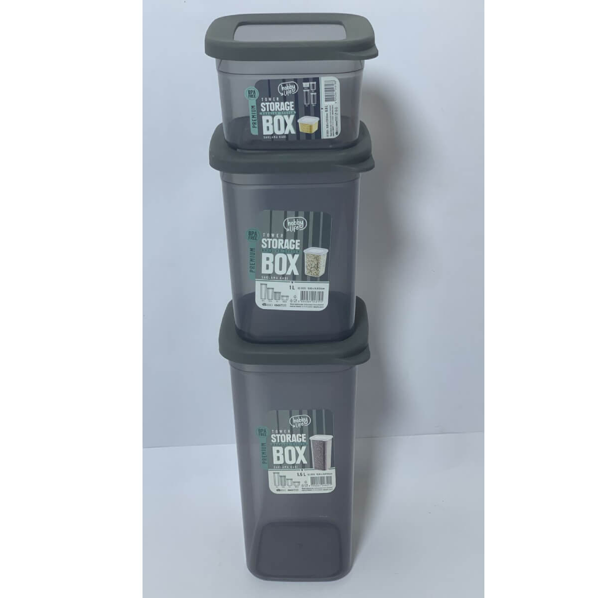 طقم 3 علب تخزين تاور بريميوم (500 مل + 1 لتر + 1.5 لتر)