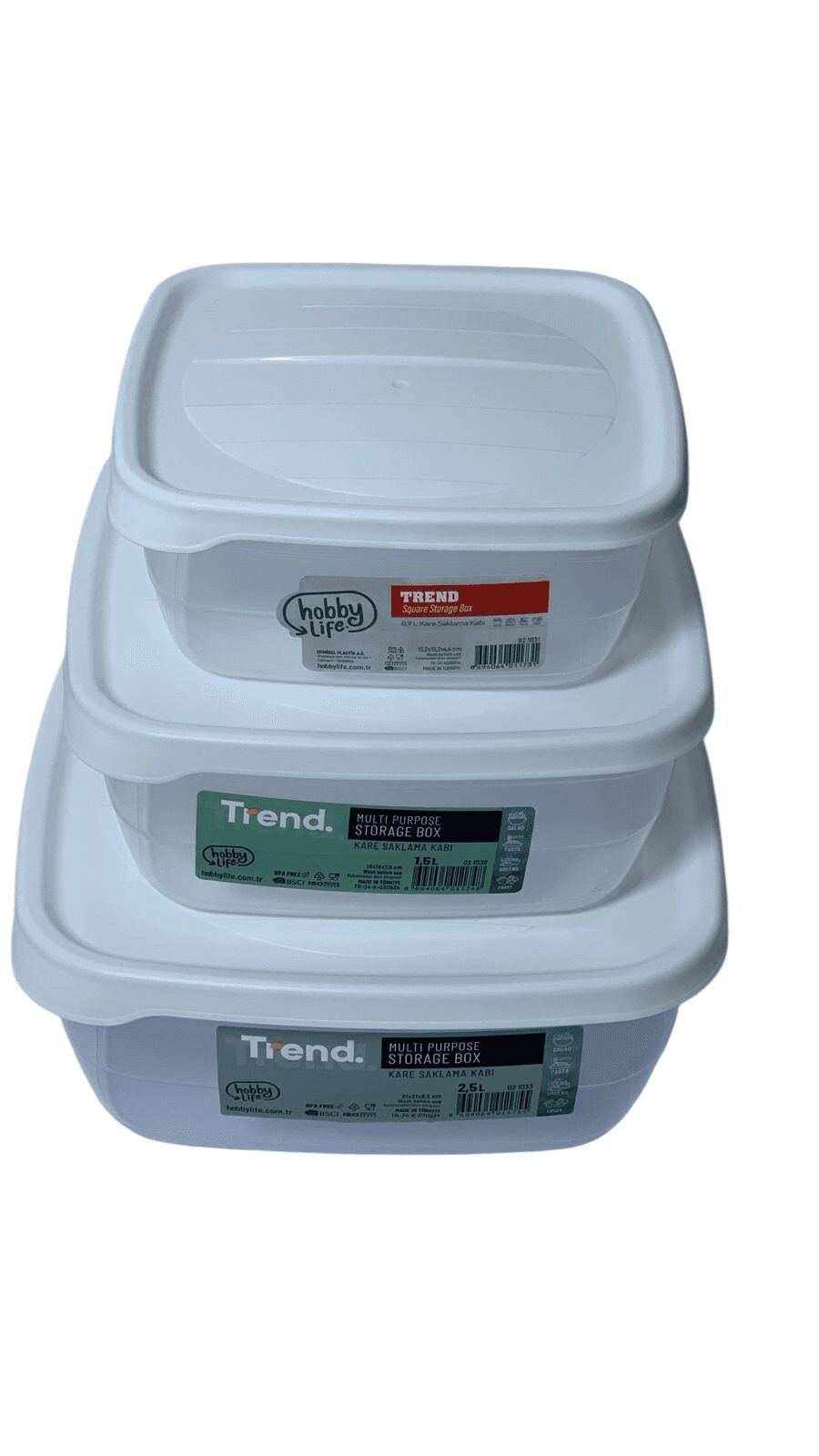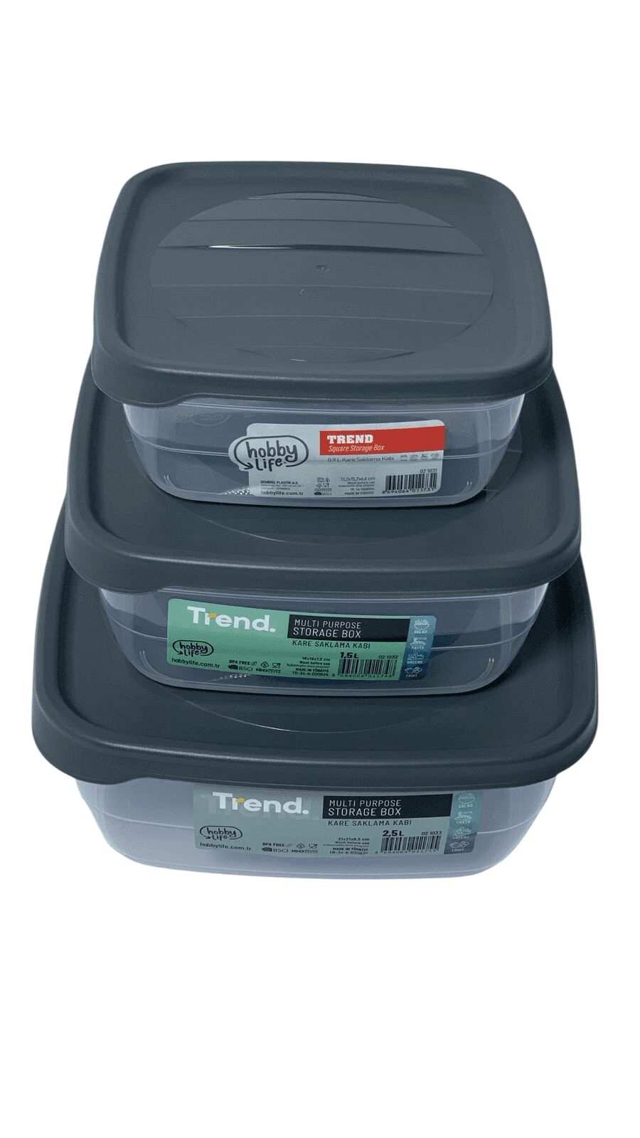 Set of 3 Square Trend Storage Boxes (0.9 L + 1.5 L + 2.5 L)